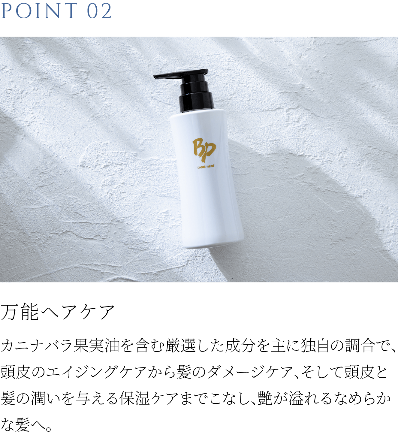 | 全成分表記 | 水、ミリスチルアルコール、ジメチルステアラミン、ベヘニルアルコール、パルミチン酸イソプロピル、乳酸、フェノキシエタノール、オレンジ油、シア脂油、ミリスチン酸、グレープフルーツ果皮油、ココイルアルギニンエチルPCA、マカデミア種子油、BG、ヘキシルデカノール、ハチミツ、トリ(カプリル酸/カプリン酸)グリセリル、ヘキサ(ヒドロキシステアリン酸/ステアリン酸/ロジン酸)ジペンタエリスリチル、メドウフォーム油、加水分解エンドウタンパク、コメ胚芽油、ヘーゼルナッツ油、アボカド油、加水分解シルク、アーモンド油、ツバキ種子油、ブドウ種子油、ホホバ種子油、ポリグルタミン酸、カニナバラ果実油、月見草油、ヒアルロン酸ヒドロキシプロピルトリモニウム、γードコサラクトン、ユズ果実エキス | 使用方法 | 洗髪後、軽く水気を切ってから全体によくなじませて、5分放置してから流す。 |